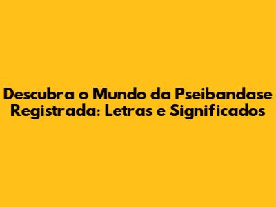 Descubra O Mundo Da Pseibandase Registrada: Letras E Significados