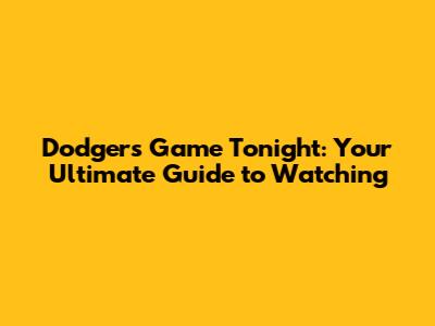 Dodgers Game Tonight: Your Ultimate Guide To Watching