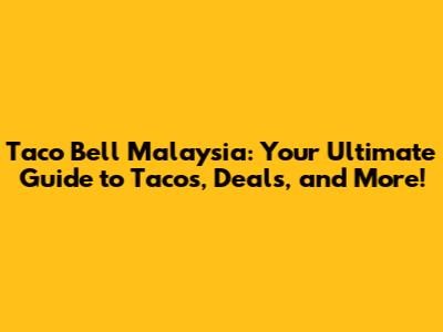 Taco Bell Malaysia: Your Ultimate Guide To Tacos, Deals, And More!