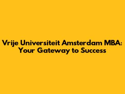 Vrije Universiteit Amsterdam MBA: Your Gateway To Success